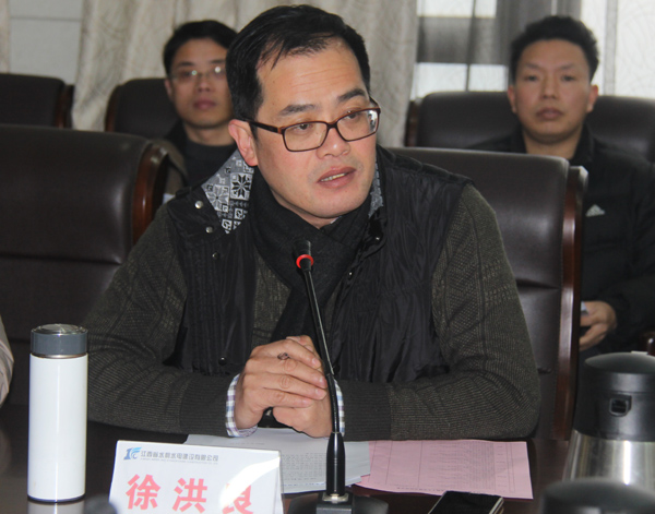 2015年1月31日,江西省水利水電建設有限公司2014年度年終述職大會在公司總部順利舉行。公司董事長、黨委書記王元旦,總經理徐洪良,國內、國外工作的中高層管理人員、項目經理代表,員工代表共50多人參加了述職大會??偨浝硇旌榱贾鞒謺h。