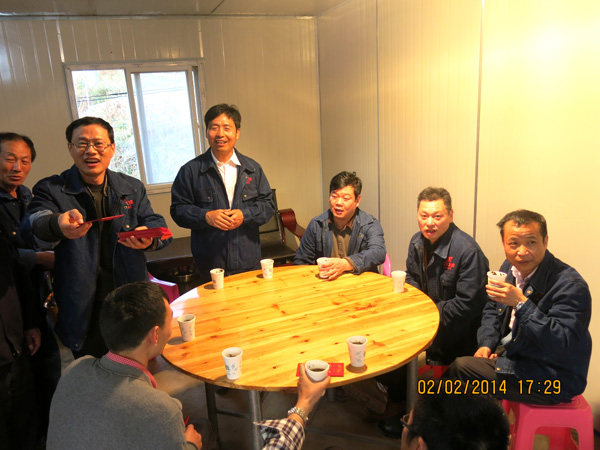 2月2日,正月大年初三,公司董事長兼總經(jīng)理王元旦一行來到遂川縣大坑鄉(xiāng)高倚四級電站建設工地,現(xiàn)場察看了電站大壩工程施工建設情況,并親切看望并慰問春節(jié)期間仍堅守崗位、奮戰(zhàn)在施工第一線的員工,代表總公司向他們及其家屬致以親切的慰問和節(jié)日的祝福。