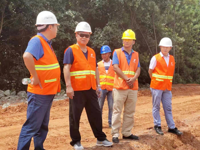 王元旦董事長沿著渠線步行詳細查看工程進展情況,對工程進度的推進予以了肯定,并對各干渠影響工程進度存在的關鍵問題進行現場指導。董事長要求項目全體成員再接再厲,克服持續降雨和炎熱天氣帶來不利影響,科學籌劃,合理安排人、機、物,針對影響工程進度的因素,要分段切割,強化管理,加強領導,合理調配,增加有生力量,加班加點,確保主干渠通水。