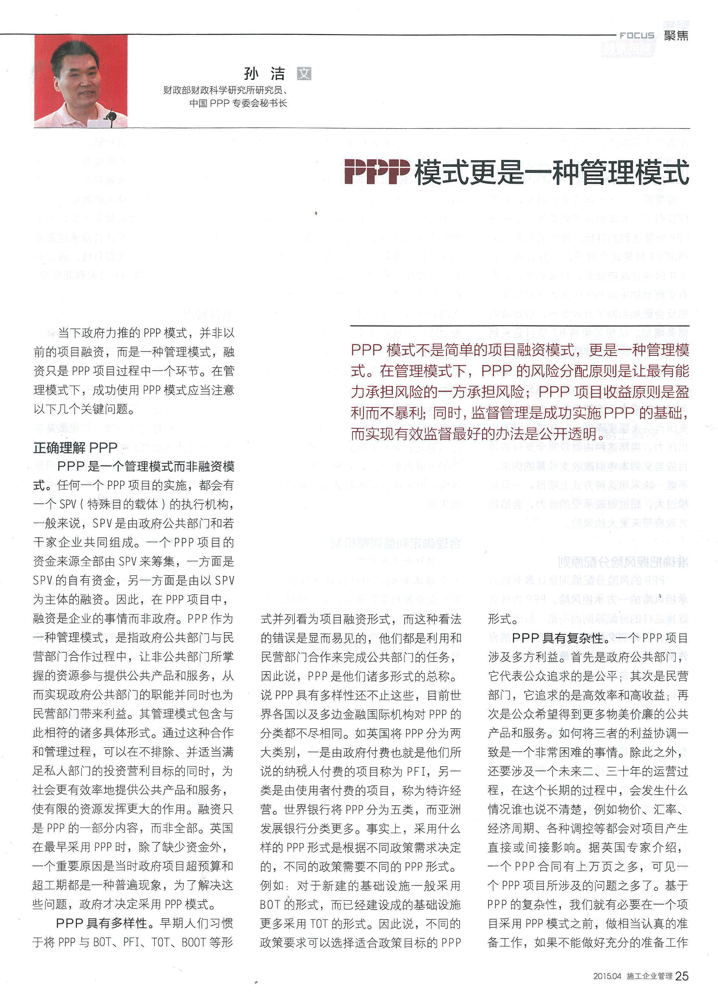 PPP模式:更是一種管理模式
